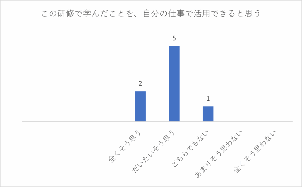 受講者の皆さま、研修直後アンケートへのご協力もどうもありがとうございました。