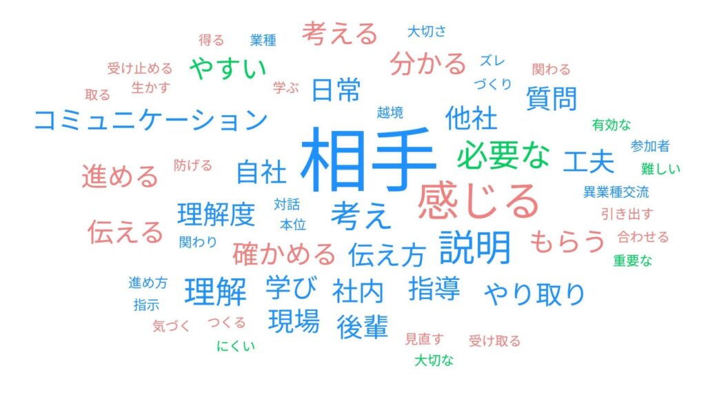 - 自分の考えを伝えるだけでなく、相手がどう受け取っているかを確認しながら進める必要があると感じた。